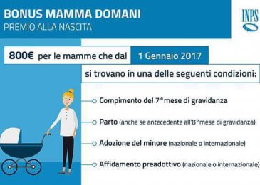 Rinnovato per un altro anno il cosiddetto “Premio alla Nascita INPS e Premio all’Adozione”, conosciuto meglio come Bonus Mamme o Bonus Mamme Domani. Il Premio alla Nascita è un incentivo istituito al fine di aiutare le mamme a sostenere i costi necessari che prevede la nascita di un bambino. A partire dal 1° gennaio 2020, l’INPS inizierà ad accogliere le domande. Non ci sarà alcuna soglia di reddito da rispettare, per cui tutte le donne che in questo periodo si trovano in stato interessante potranno fare domanda. Ogni mamma che rispetterà i requisiti richiesti quindi, otterrà il Premio alla Nascita 2020, dell’importo di 800 euro, che saranno erogati in un’unica soluzione. Per accedere al Bonus, le donne dovranno soddisfare i seguenti criteri: